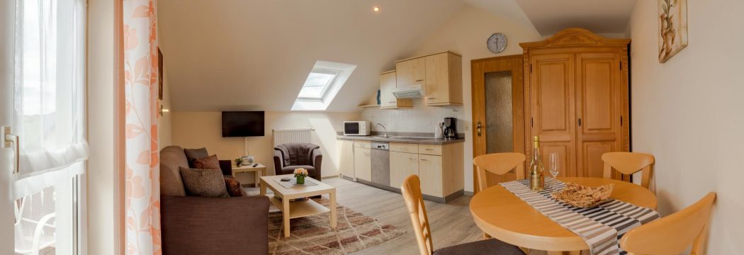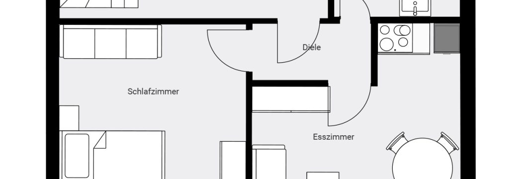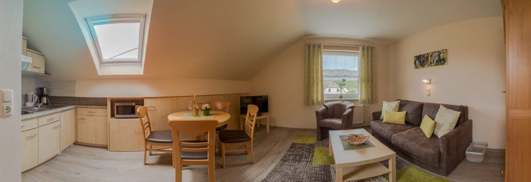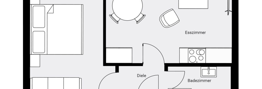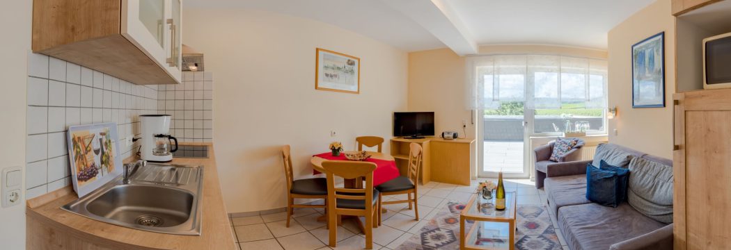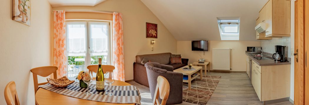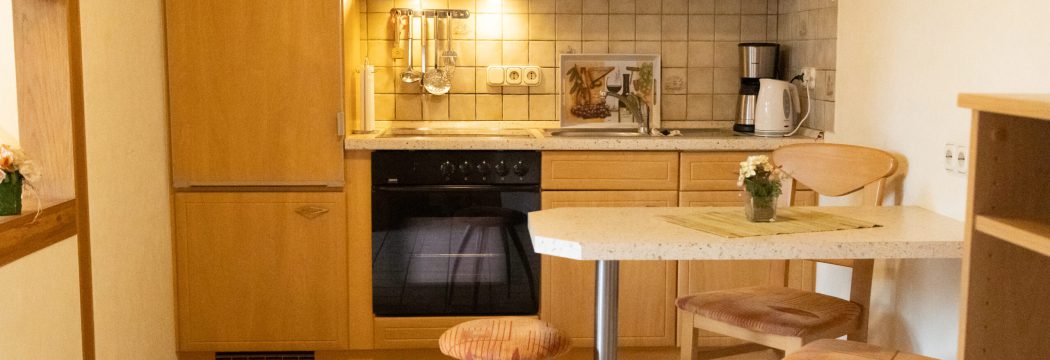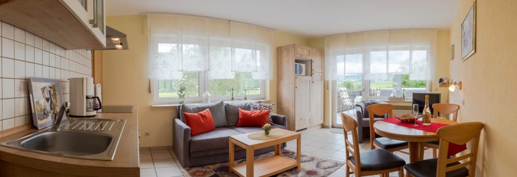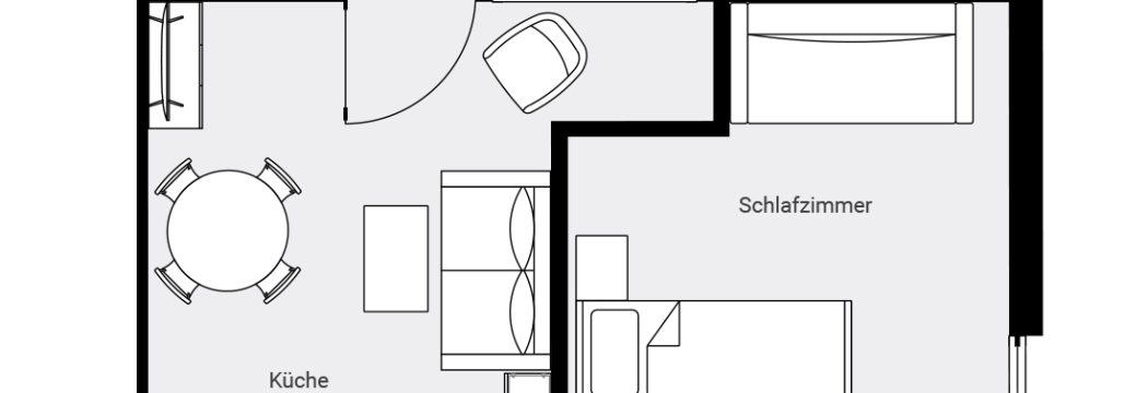 - 1-Zimmerappartment mit Wohnecke, Kochnische und Schlafnische (2 Betten)